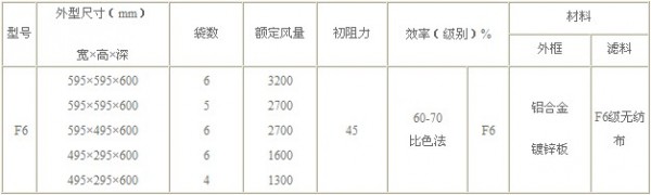 F6級(jí)袋式中效過(guò)濾器標(biāo)準(zhǔn)技術(shù)參數(shù):