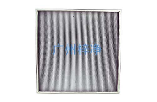 亞高效過濾器采用超細玻璃纖維濾紙或聚丙烯濾紙為濾材,經密摺而成。亞高效過濾器密摺的濾紙由紙隔板或鋁箔隔板做成的小插件間隔,保持流暢通道,外框為鍍鋅板、不銹鋼板或鋁合金型材,用新型聚氨酯密封膠密封。