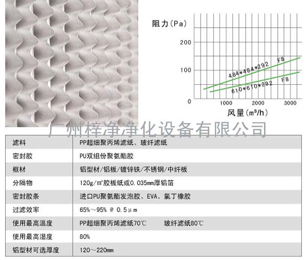 有隔板中效過濾器濾料為抗濕性100%人造纖維濾材制成,有隔板中效過濾器濾網制成V字型,給予氣流提供最大過濾面積,有隔板中效過濾器采用特殊的工藝使濾網間保持一定距離,過濾面積增大,有隔板中效過濾器容塵量較高。F-S有隔板中效過濾器濾料可清洗,反復使用,節約經濟成本。