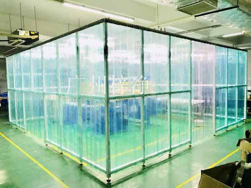 2、電子廠房等車間外部車間凈化級別較低,內部需要更高級別要求區域,如流水線作業區,檢查臺面,特種設備工作釋放灰塵顆粒或特殊氣味的,適用于建造局部小面積區域,把核心工序控制在潔凈區域內,達到提高產品良率,尤其一些光電行業的生產設備,生產過程中會釋放異味,潔凈工作棚頂部的自帶風機過濾系統更能提升內部空氣質量,提供給員工舒適的空氣環境。