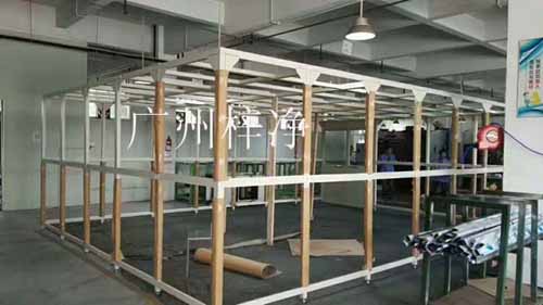 材料以鋼方通噴塑作為框架,采用風機濾網機組FFU送風,千級凈化棚四周圍用防靜電垂簾,頂部鋪蓋密縫盲板,形成一個密縫區,內部凈化級別可達10—100000級;特別適用于車間內局部凈化級別要求高的區域,如流水線作業區域。高精確度產品組裝區。