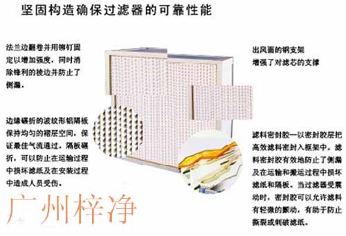 我們采用公司特制的鋁箔或膠版紙做間隔片,使得空氣分布均勻且風速勻稱,達到高效過濾;梓凈生產的每臺高效過濾器均嚴格按照標準采用業檢測設備進行檢測,保證出廠之空氣過濾器產品100%合格;
