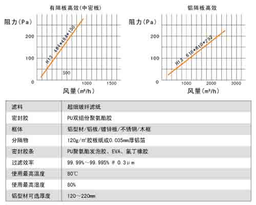 紙隔板高效過濾器一般特性: