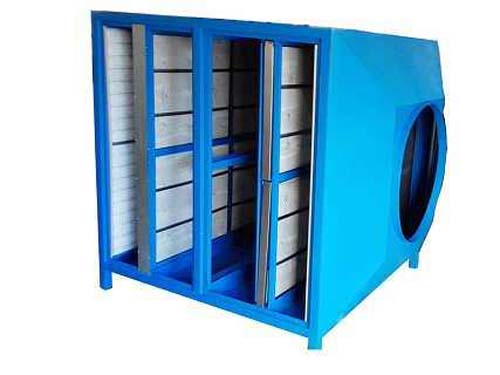 里面用角鐵打上一個(gè)一個(gè)的架子,活性炭除味箱內(nèi)放有活性炭初效過(guò)濾器,袋式中效過(guò)濾器或者活性炭過(guò)濾器,活性炭高效過(guò)濾器一般用在排風(fēng)處。