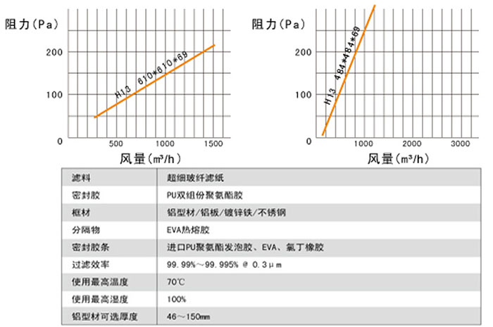 無隔板高效過濾器風量計算(級別,H13-H14,風量為0.45m/s)