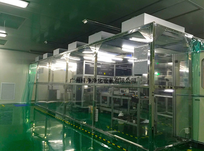 潔凈無塵棚特點風機從FFU頂部將空氣吸入,經初效過濾器,高效過濾器過濾,過濾后的潔凈空氣在整個出風面以0.45m/s±20%的風速勻速送出到無塵棚內。形成均流層,使潔凈空氣氣流呈垂直單向流,從而保證了工作區內所要求的潔凈度。潔凈無塵棚應用領域: